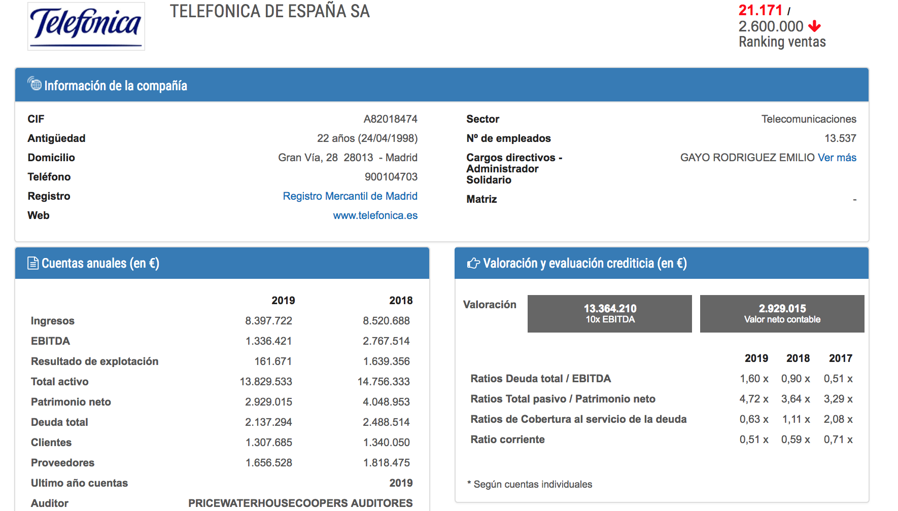 Desde las principales compañías del Ibex 35 hasta las pymes más innovadoras del mercado, la amplia base de datos de Infocif desgrana la información financiera de cada compañía con todo detalle, tal y como se muestra en la imagen.