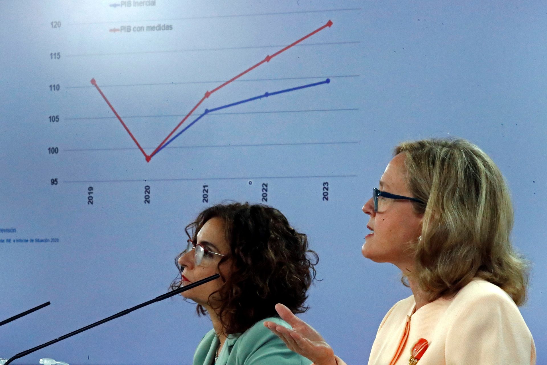 El Gobierno reconoce que las cifras de la crisis económica son más graves de lo que anunció el pasado mes de mayo. Los rebrotes del coronavirus y los nefastos resultados de la economía española en verano han llevado al Ejecutivo socialista a revisar este martes el cuadro macro asestando un duro recorte a sus previsiones. Así, finalmente, este año, el PIB de España se hundirá un 11,2%, frente al 9,2% previsto. Para 2021, el optimismo vuelve a embargar al Gobierno, que estima una subida del PIB del 7,2%, en lugar del 6,8% que anunció hace unos meses.