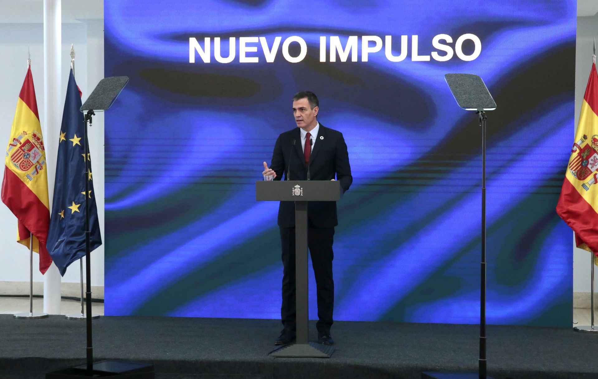 Pedro Sánchez no ha escatimado en anuncios y promesas mastodóndicas en un acto que ha sido seguido de forma telemática por todo el Ejecutivo, patronal y sindicatos, así como los embajadores de los 27 países miembros de la UE.