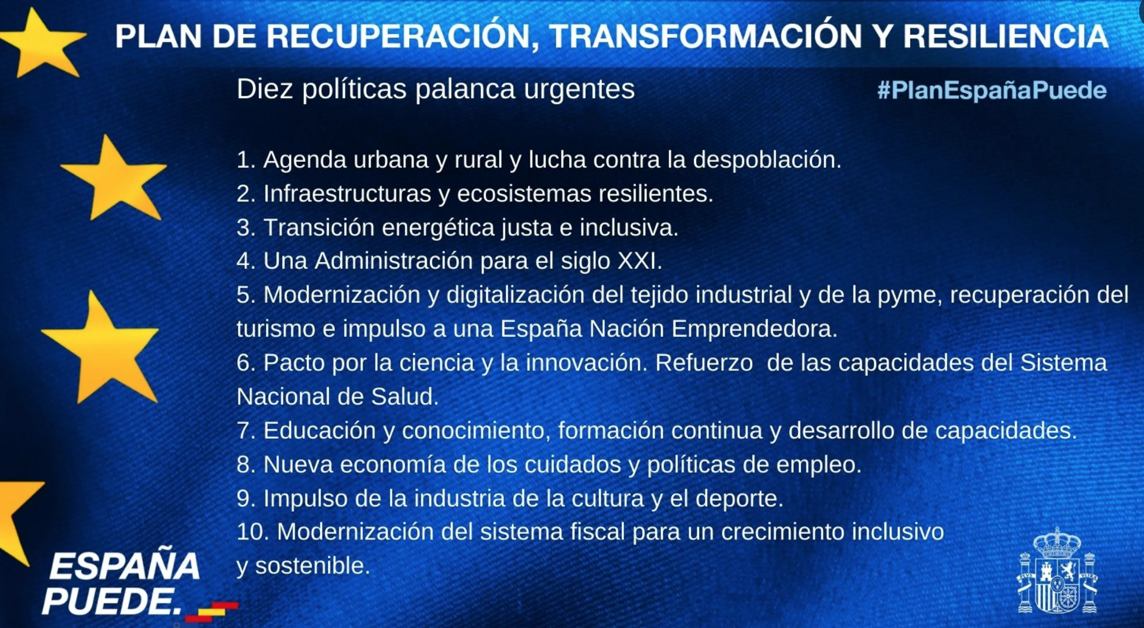 Mientras España se enfrenta a la mayor crisis económica del periodo de paz, el objetivo de Sánchez es destinar el dinero europeo a "cuatro ejes transversales":