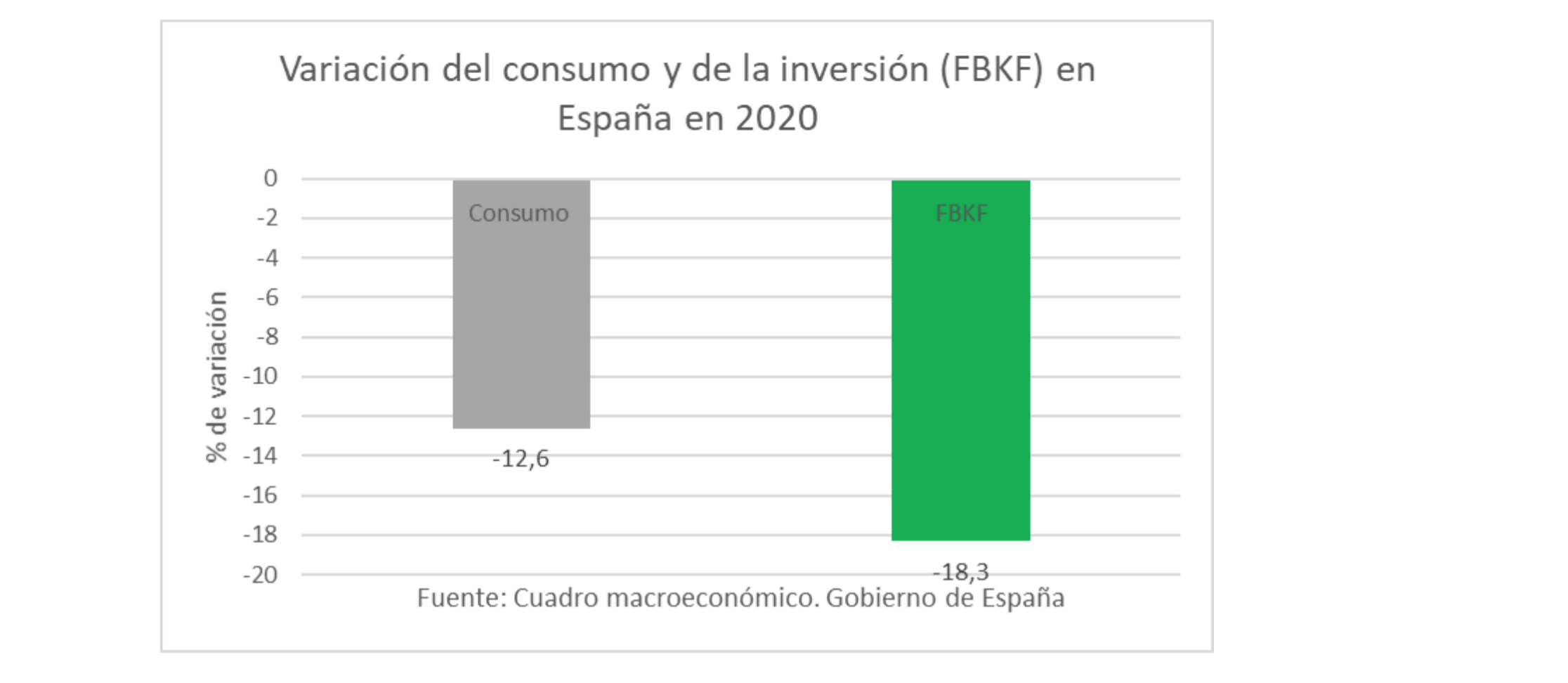 Por su parte, las empresas, dada la inseguridad jurídica existente ahora mismo, sin un itinerario claro marcado en la normativa surgida a raíz de la pandemia, no se atreven a invertir, de manera que la formación bruta de capital fijo se retrae y caerá en 2020 hasta esa cifra mencionada anteriormente, cercana al 20%, incertidumbre que se extenderá a 2021, donde consumo e inversión no se recuperarán adecuadamente, sino de manera débil para la caída que habrán tenido este año.