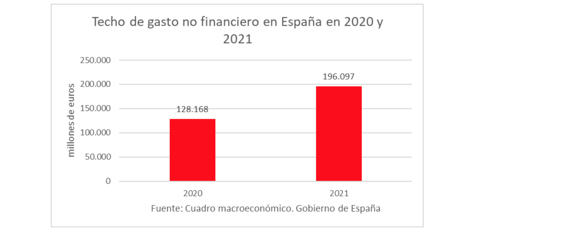 Dentro de ese festín de gasto, el Gobierno aprobó un techo de gasto no financiero que se incrementa un 53% sobre el actual, llevando esa cifra desde los presentes 128.168 millones -ya elevado e incrementado de por sí- a los 196.097 millones de euros. Casi 200.000 millones de euros que pondrán de su parte en la ruina a la que el Gobierno está llevando a la economía española.
