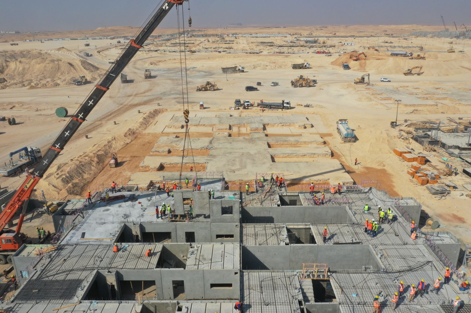 Una imagen aérea que muestra la evolución de las obras del proyecto de urbanización inspirada en la ciudad española de Murcia.
