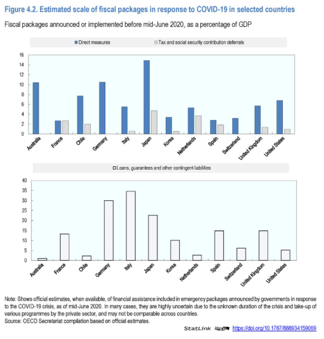 Lo peor, sin lugar a dudas, es la falta de proyecto y la vuelta a las fracasadas políticas de Zapatero para abordar esta situación. Con los planes de estímulo fiscal consolidados en la mano, queda patente la incapacidad del gobierno para articular políticas económicas anticíclicas. La comparativa internacional, en términos de esfuerzo fiscal, nos deja en evidencia, sea cual sea la fuente. Sirva como ejemplo este gráfico que ha elaborado la OCDE.