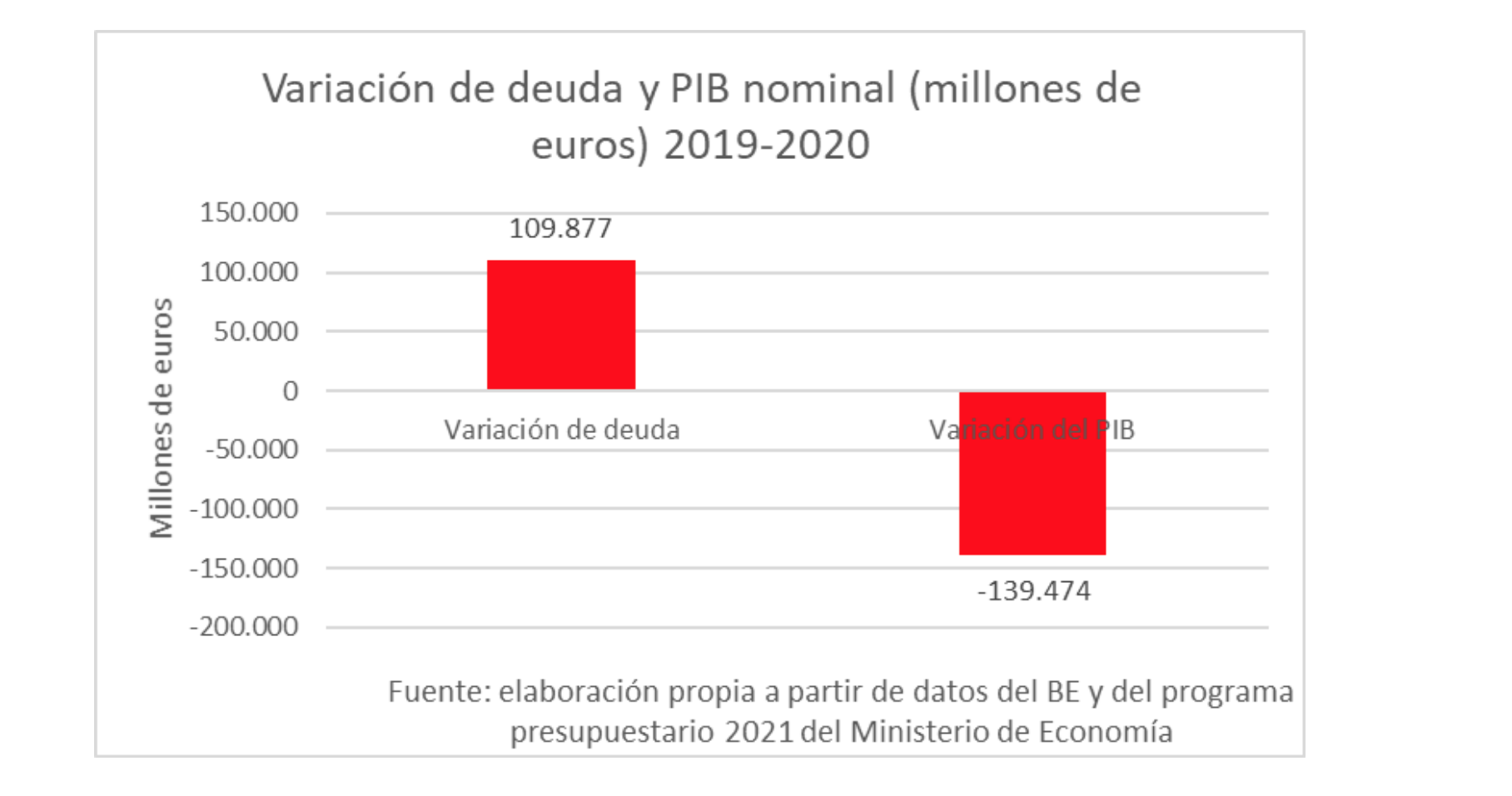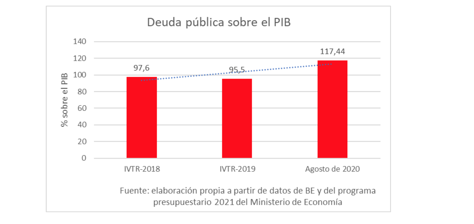 Ahora vemos las consecuencias de ello: una deuda creciente, que ha pasado del 97,6% con el que cerró 2018, al 95,5% del cierre de 2019 y que ahora se eleva al 117,44% de julio de 2020, según los datos de deuda del Banco de España y la previsión de crecimiento del PIB nominal del ministerio de Economía plasmada en el plan presupuestario 2021 enviado a Bruselas el quince de octubre de abril (página 12 del informe).