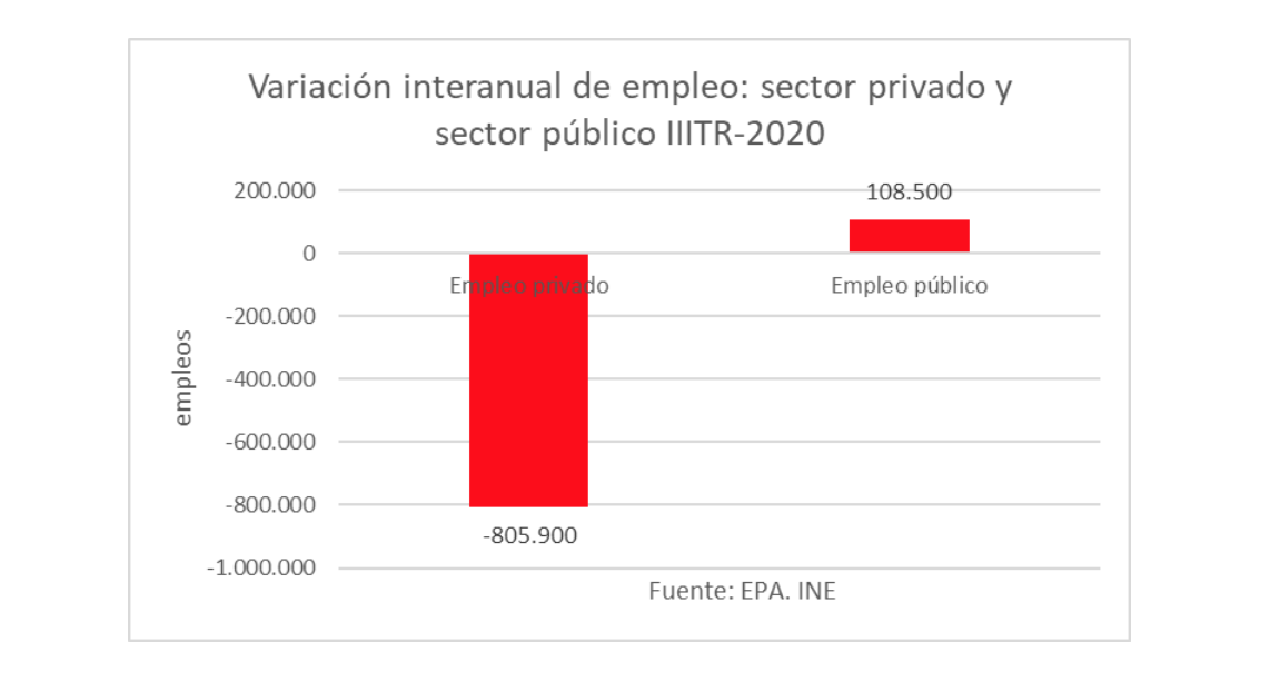 ¿Qué es lo que está provocando con ello? Una sociedad subsidiada. De esta manera, por ejemplo, según la última EPA vemos que en el último año ha descendido el empleo en el sector privado en 805.900 empleos y ha aumentado el empleo público en 108.500 puestos de trabajo.