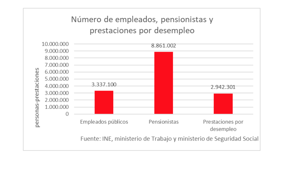 Ese incremento de empleados públicos, más el que se prevé en el proyecto de PGE, tensa la sostenibilidad de las cuentas públicas, pues con el propio envejecimiento de la población el aumento de gasto en pensiones está garantizado. Si a ello le unimos las prestaciones por desempleo, entonces la presión sobre el gasto público se intensifica. De esa manera, ahora mismo tenemos 3.337.100 empleados públicos, según la EPA; 8.861.002 pensionistas, según el ministerio de la Seguridad Social; y 2.942.301 prestaciones por desempleo, según el ministerio de Trabajo. Si a ello le unimos las prestaciones por ingreso mínimo vital, escasas todavía por la lentitud en el reconocimiento de las mismas y llega a más de 800.000 familias, tal y como prevé el Gobierno, la insostenibilidad se acrecienta.