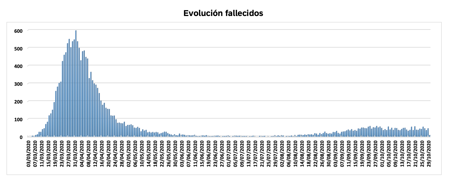 - La media móvil a siete días en el número de positivos ha caído de 4.000 a 1.000 desde el 18-S hasta el 3-N. Si solo nos fijamos en las cifras diarias, el "pico" llegó a ser de 6.700 positivos, pero la última cifra es de 250.