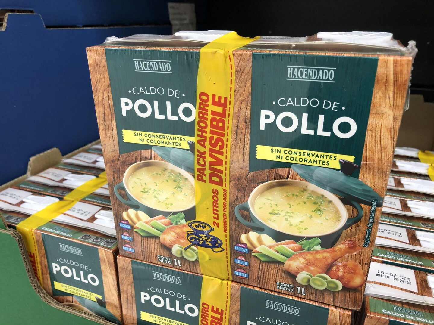 El proveedor totaler guipuzcoano Interal produce el caldo de pollo Hacendado en sus instalaciones de la localidad de Funes (Navarra), en formato de packs de dos bricks de litro, con opción divisible.