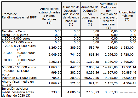 La estadística del IRPF muestra que esta ventaja es utilizada, por la mitad de los declarantes que ingresan más de 60.000 euros, cuyo ahorro les supone el 45% de la aportación al Plan de Pensiones, variando este porcentaje según la Comunidad Autónoma de residencia. Es más, a igualdad de importes invertidos en planes de pensiones, la ventaja fiscal para las rentas mayores es casi el doble que para las rentas medias.