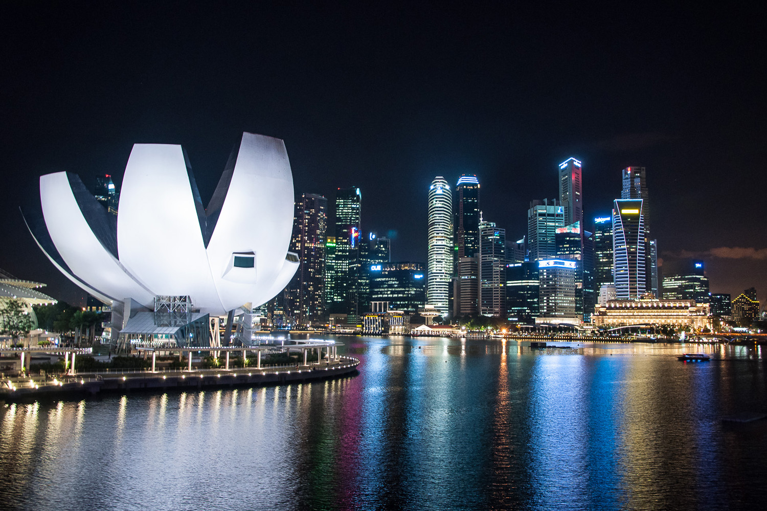 En los alrededores de la bahía se puede tener una panorámica del Museo ArtScience, con forma de flor de loto, los rascacielos de Singapur y los jardines Gardens by the Bay, inspirados en una orquídea gigante.