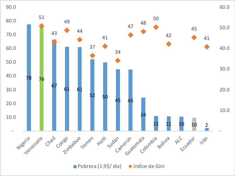 Por último, Venezuela se ha convertido en uno de los países con mayor desigualdad de renta del mundo, dado que su índice de Gini se ha disparado a 0,51, peor que el Congo, Zimbabue o Haití. En definitiva, el chavismo arroja un desastre económico y social sin paliativos.