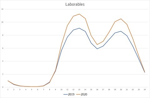 Así, el teletrabajo explica que se incrementen las llamadas, sobre todo alrededor de las 12:00, para tratar asuntos que antes se consultaban presencialmente. Igualmente han subido las llamadas de voz con el móvil sobre las 19:00, más relacionado con un uso más familiar. A ello se une que el tráfico de voz de fin de semana ha crecido más que el tráfico de voz de laborables debido a que hay más tiempo libre y la opción de llamada de voz ha ganado usuarios en esta etapa de pandemia donde los encuentros personales se han reducido mucho.