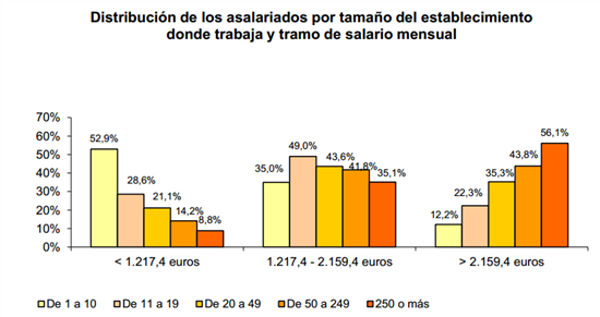 Por otro lado, la persecución a las grandes empresas carece de sentido, ya que debemos tener en cuenta que son precisamente las grandes compañías, y no las pequeñas, las que ofrecen salarios más elevados, como observamos en el siguiente gráfico.