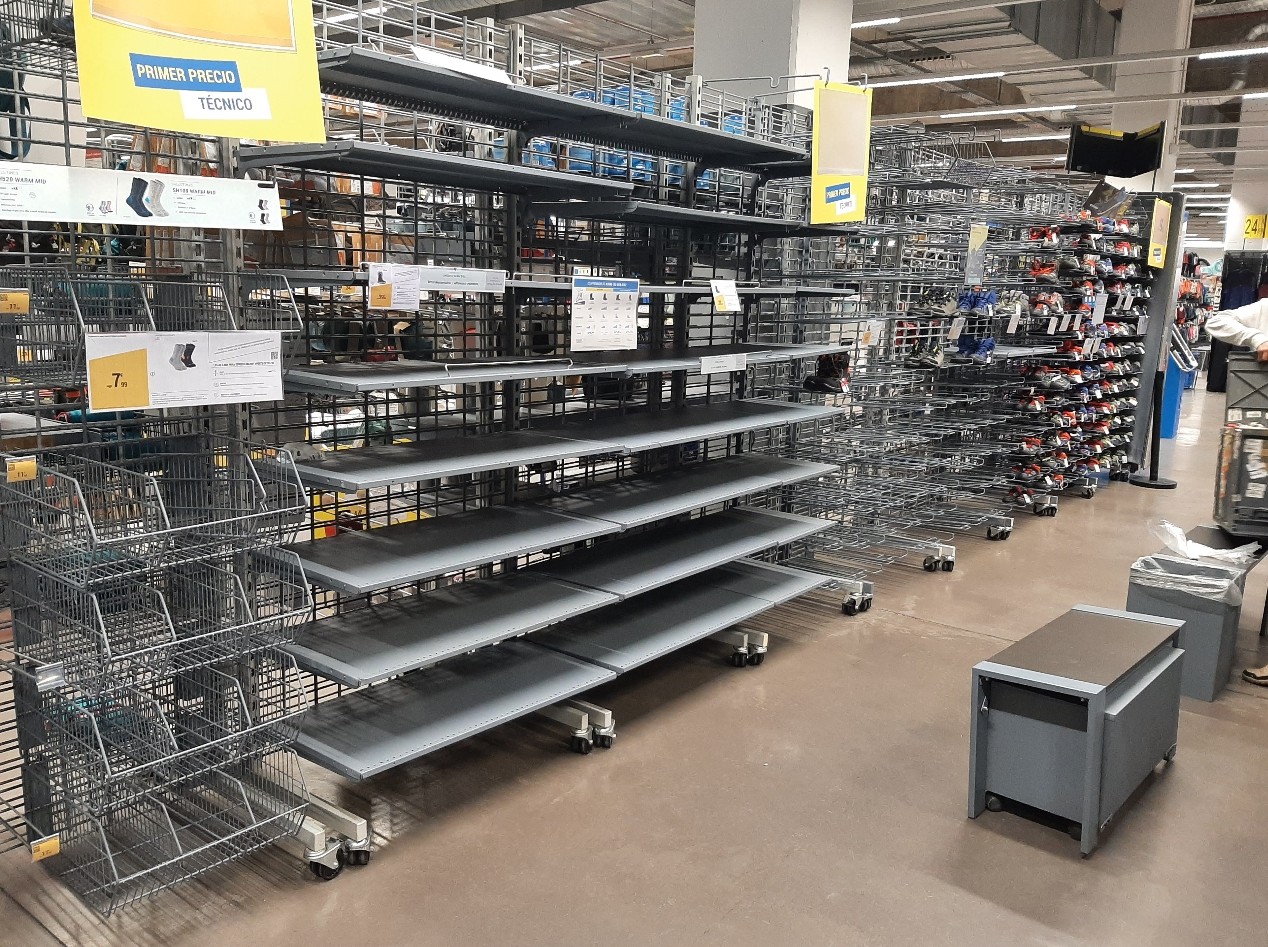 "Desde logística están desbordados y tenemos muchas rupturas de stock", añade este empleado de la firma francesa de material deportivo, que además, asegura que "durante varios días se ha alcanzado el aforo máximo" en la tienda "y eso que ya de por sí el aforo es elevado en nuestras superficies".