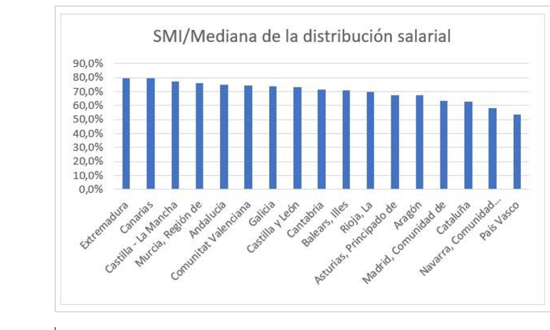 Además, la concentración del mercado, cualificación y edad no son los únicos factores que se podría recomendar tener en cuenta. También deberíamos fijarnos en el territorio en que nos encontramos. No supone lo mismo el mismo SMI para Madrid que para Extremadura, donde el SMI se encuentra más cerca del salario mediano y podría causar mayores pérdidas de empleo que en la CAM.