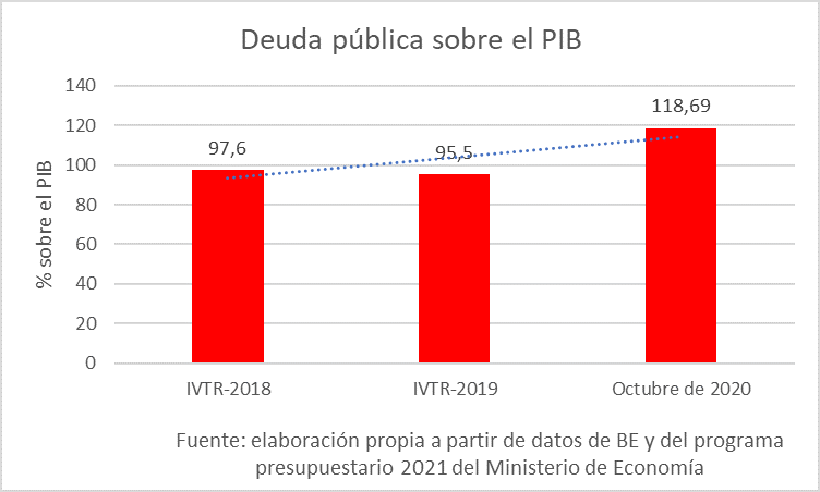 Ahora vemos las consecuencias de ello: una deuda creciente, que ha pasado del 97,6% con el que cerró 2018, al 95,5% del cierre de 2019 y que ahora se eleva al 118,69% de noviembre de 2020, según los datos de deuda del Banco de España y la previsión de crecimiento del PIB nominal del ministerio de Economía plasmada en el plan presupuestario 2021 enviado a Bruselas el quince de octubre de abril (página 12 del informe).