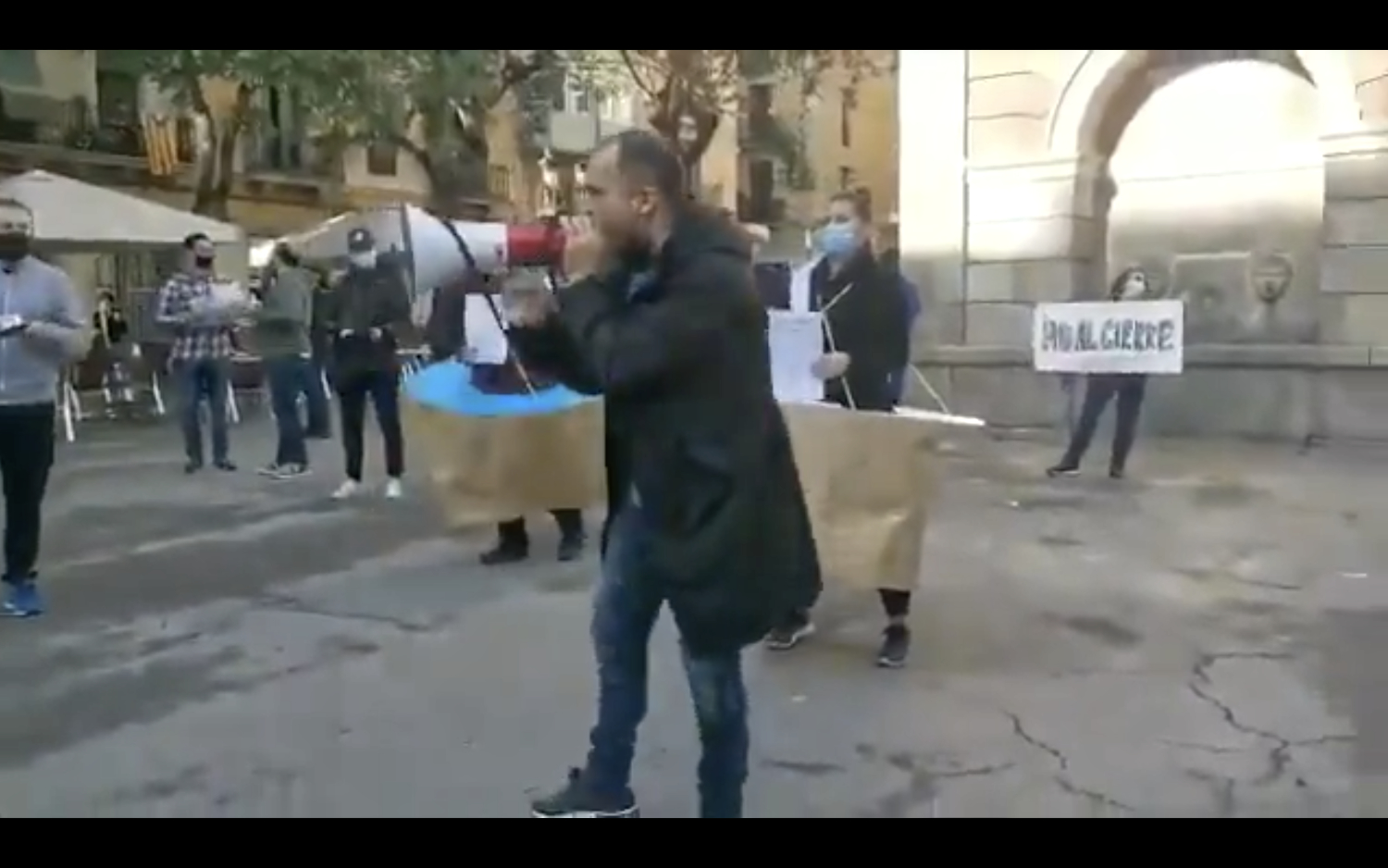 La desesperación y el hartazgo del sector hostelero en Cataluña provoca manifestaciones verdaderamente provocativas. Si hace unas semanas los trabajadores de un bar de Hospitalet lanzaban globos con sangre de cerdo contra la fachada de la Generalidad, ayer un grupo de hosteleros del barrio de Gracia de Barcelona, el de más voto independentista de la ciudad, daban un paso más y se manifestaban al grito de "Ayuso ven aquí" ante la perplejidad de vecinos y viandantes.