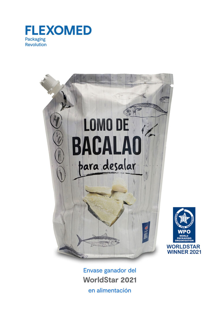 Flexomed, pionero en la fabricación de este tipo de envases en España le dio una vuelta al concepto e ideó para su cliente "Ahumados Ubago" la forma de desalar el bacalao sin sacar el producto del envase.