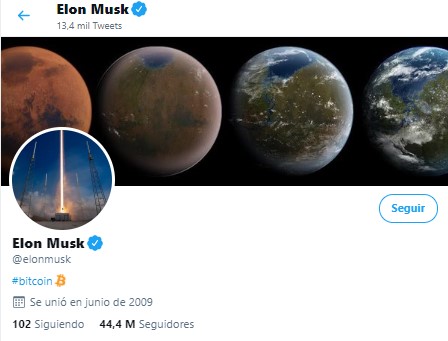 Elon Musk parecía haber entrado en el universo Reddit y el ‘superapoyo’ de valores como Gamestop o AMC en quiebra técnica para "rescatarlos", según su visión, de las redes de los fondos de inversión más bajistas. Con una portada muy críptica como es habitual en él en la que hablaba supuestamente de una criptomoneda y el apoyo que estos alternativos habían dado al altcoin Doge. En este ambiente, ni corto ni perezoso Elon Musk cambio su bio para apoyar a bitcoin: con un hashtag, su nombre y su emoticono.