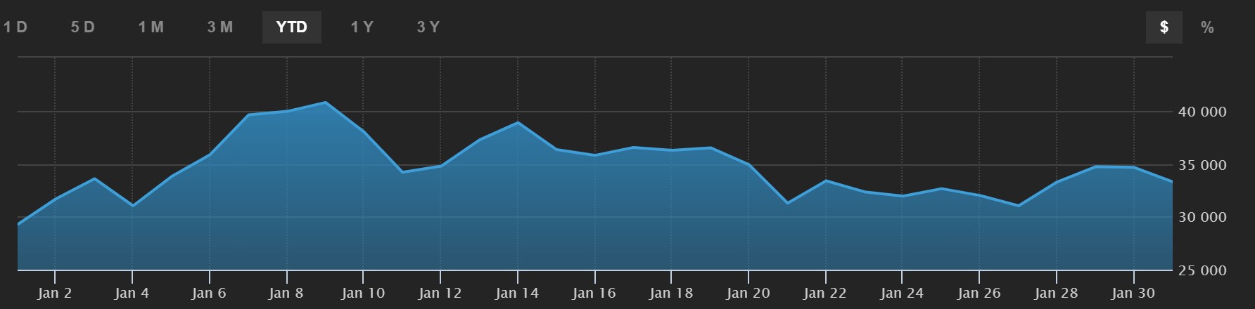 Nada más producirse el pasado día 29, al que siguió un tuit indicando... "en retrospectiva, esto era inevitable" las compras de la moneda online no se hicieron esperar. Recordemos que la cuenta de Twitter de Elon Musk tiene nada menos que 44,4 millones de seguidores. En solo media hora, bitcoin subió un 14% y en esa jornada alcanzó los 38.546 dólares, frente a la cotización de 29.911 dólares que llegó a tocar el día anterior. 5.000 dólares separaron a lo mejor y lo peor del día.