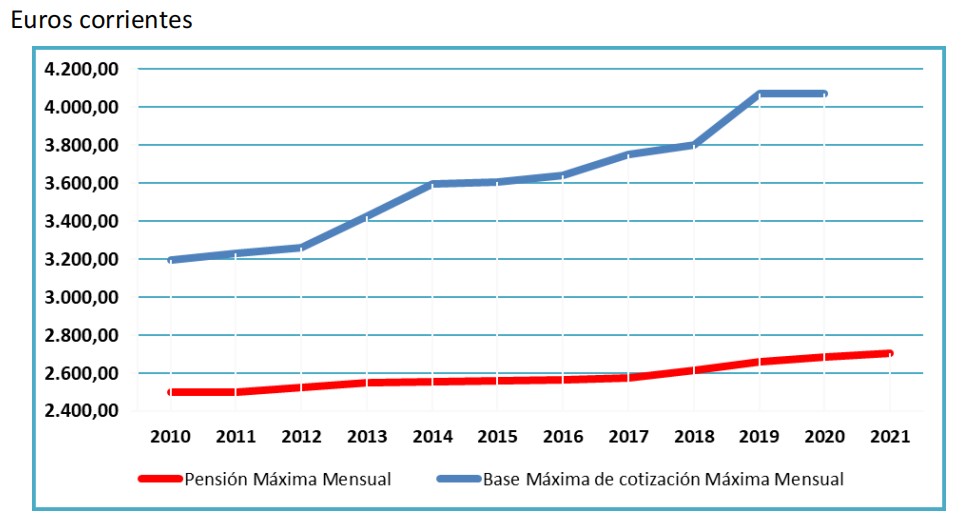- Una forma de incrementar los ingresos sin incrementar en la misma medida ni el gasto presente ni las promesas a futuro es subir las bases máximas de cotización por encima de las pensiones máximas.