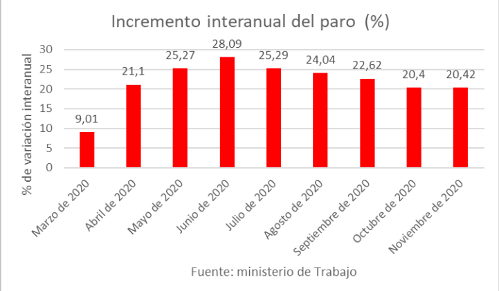 La situación de desempleo derivada de los cierres impuestos a determinadas actividades económicas, especialmente la hostelería, el turismo, el comercio y el ocio, está agotando los recursos de muchos ciudadanos, de manera que todo ese paro que se está provocando con tanta restricción tendrá unas consecuencias peores que el coronavirus no sólo en términos de riqueza, sino de mayor número de enfermedades y fallecimientos por todo tipo de patología, como sucede en toda sociedad que se empobrece, al no poder tener tantos recursos para sanidad. Adicionalmente, el quebranto económico para los ciudadanos se hará insoportable, como empezamos a ver con estas colas del hambre que crea e incrementa el paro, cuyos datos pasamos a analizar.