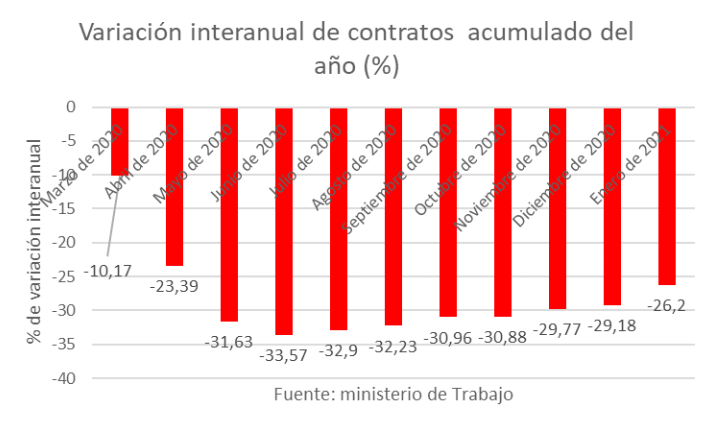 Los contratos indefinidos caen un 30,61% interanual en el mes.