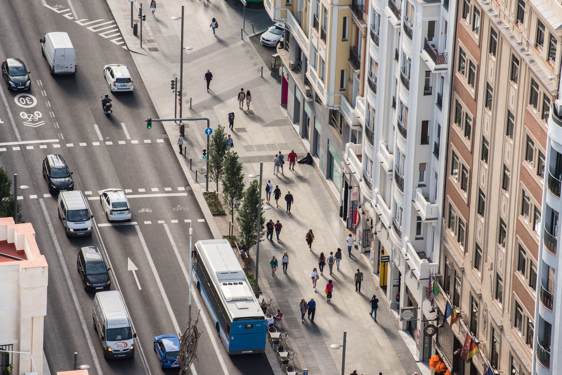 Una vista de parte de la Gran Vía desde las alturas. España posee 102 cajeros de este tipo lo que la coloca en quinto lugar.