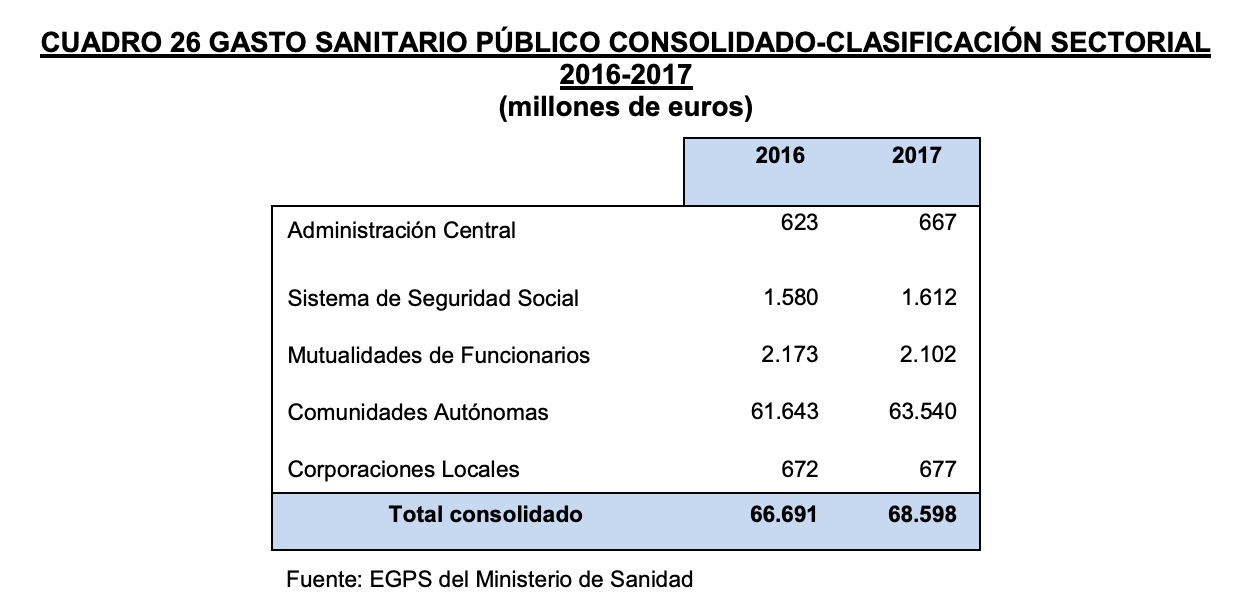 Según el estudio del TdC, a lo largo del ejercicio 2017, las Administraciones Públicas gastaron 68.598 millones de euros en partidas vinculadas a la sanidad. Si comparamos esta cifra con los 66.691 millones que se desembolsaron en el año 2016, podemos ver que se produjo un repunte interanual de 1.907 millones. No se sostiene, pues, el mantra de los "recortes" en sanidad, puesto que el gasto en el sistema nacional de salud se incrementó un 2,9%.