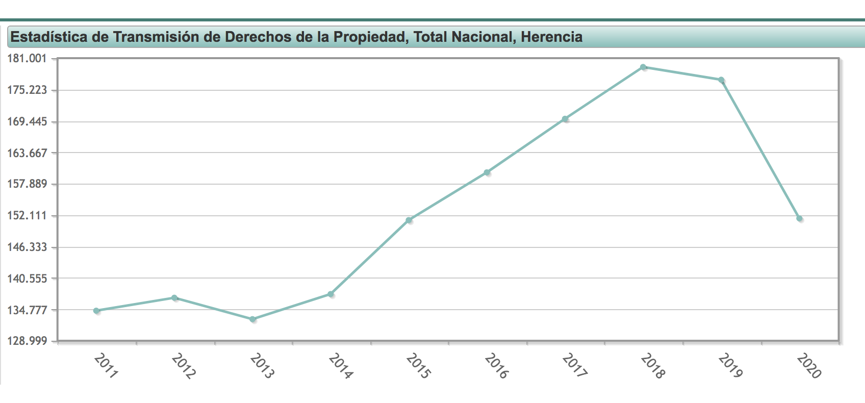 El año 2021 va a ser un año intenso para los notarios. La trágica pandemia del coronavirus se ha saldado con cifras récords de fallecimientos en España, y por ende, esta fatalidad debería notarse también en las herencias, aunque llama la atención que las estadísticas recojan lo contrario. Y es que, 2020 terminó con 297.948 adjudicaciones por título sucesorio, lo que supone un 7% menos que las 320.999 herencias que se aceptaron en 2019.