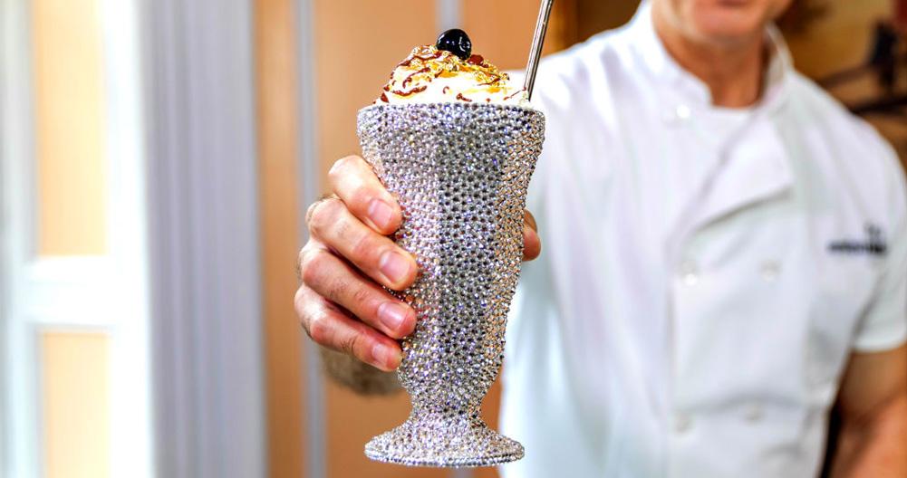 La respuesta se encuentra tanto en el vaso en el que se sirve, como en los ingredientes que lleva. El batido se presenta en una copa alargada recubierta por más de 3.000 cristales de Swarovski que ya suponen todo un lujo visual. En cuanto a los ingredientes, se utiliza una leche de Jersey famosa por su alto contenido en grasa y por el cuidado en la cría de las vacas; un helado de vainilla de Tahití; nata producida en Inglaterra, famosa por ser mucho más espesa; vainilla de Madagascar; oro de 23 quilates; crema batida; una salsa de caramelo de burra hecha con cacao de Venezuela, avellanas del Piamonte y leche de burra; y, por último, cerezas de Luxardo Gourmet Marchino, unas de las mejores del mundo.
