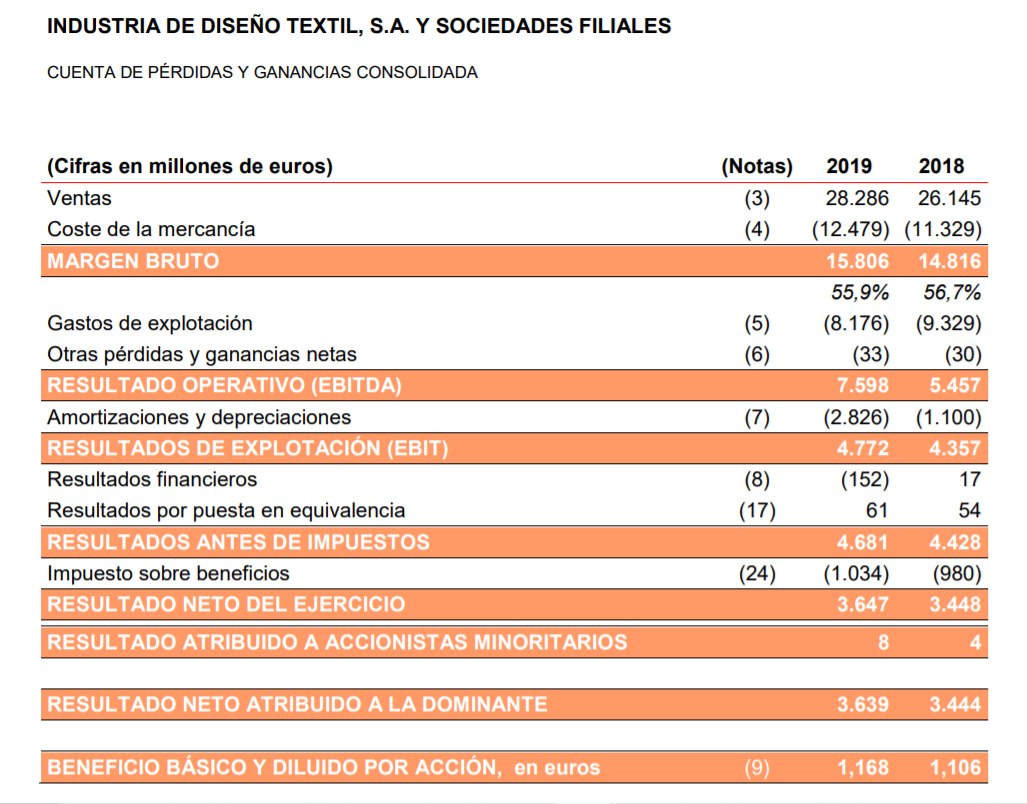 Otra falsedad es que el beneficio consolidado de Inditex en 2019 fue 3.639 millones de euros, no de 10.400 millones como afirma Matute.