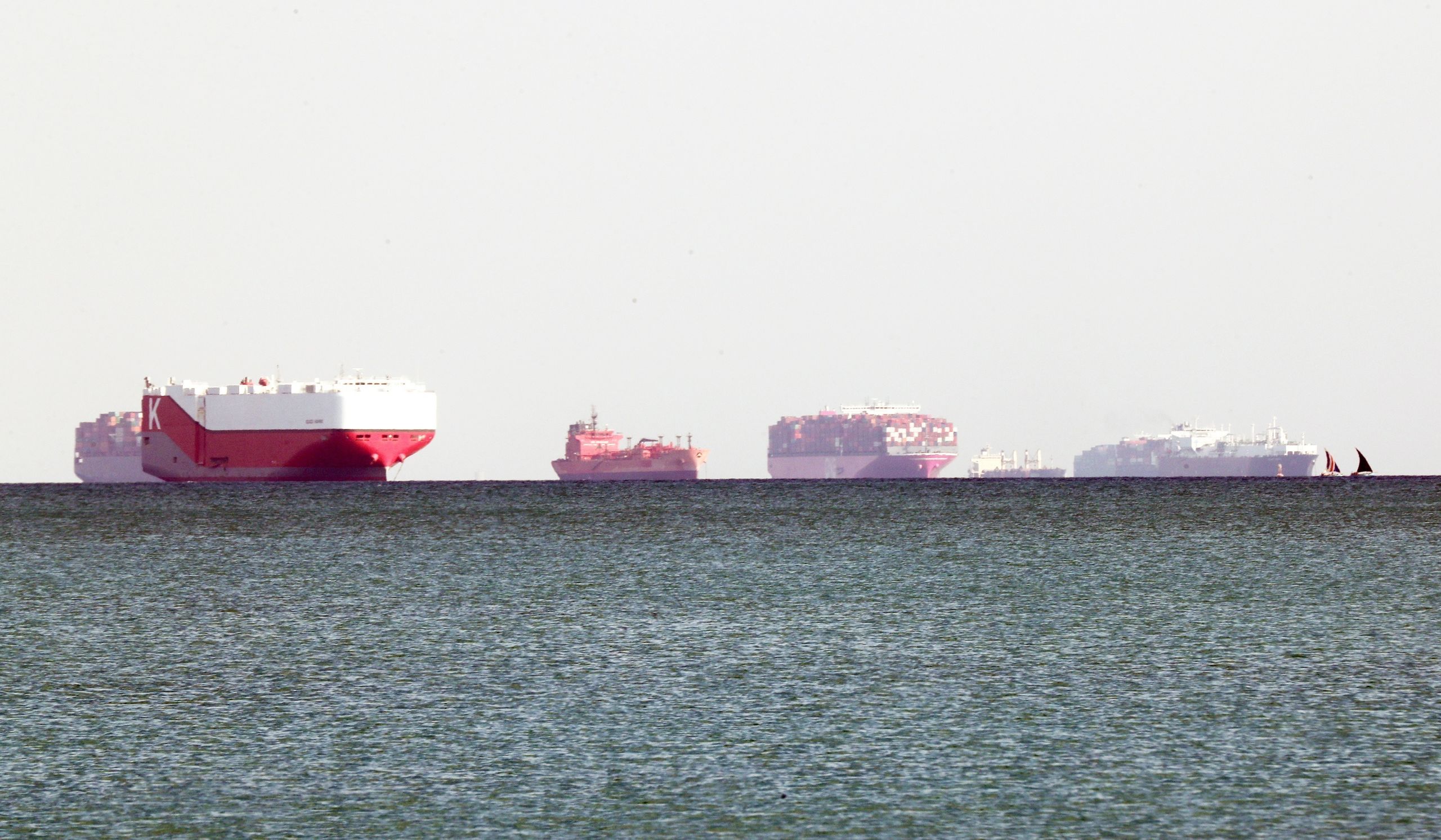 Varios de los 230 buques que aguardan a la reapertura del Canal de Suez.