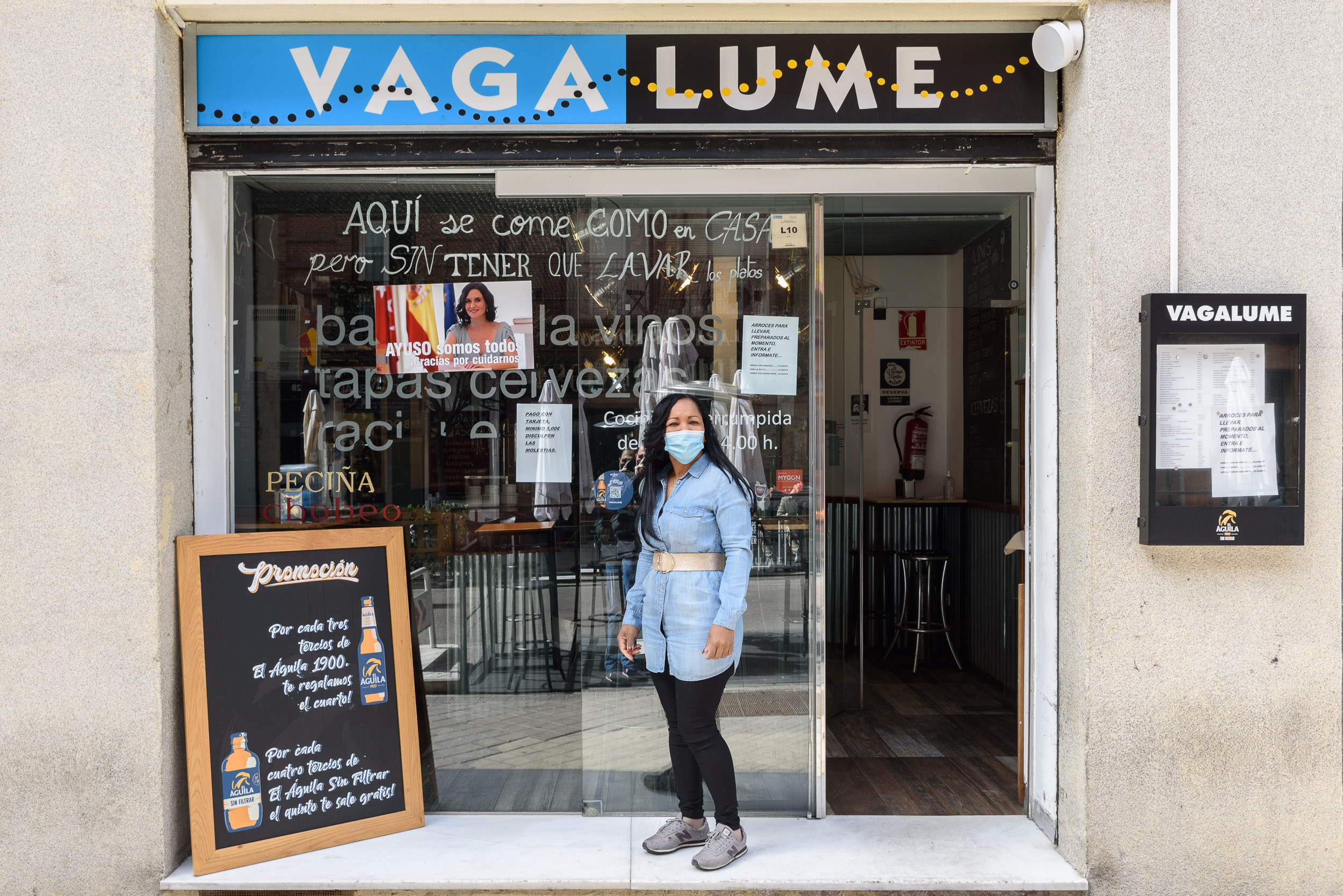 Pero algunos no tienen problemas para hablar y contarnos por qué se han sumado a la iniciativa, es el caso de Yaki, con la que hablamos a la puerta del restaurante Vaga Lume. Yaki es de origen dominicano pero ya lleva 17 años en España.