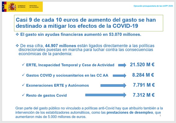 El gobierno afirma que el gasto extraordinario al que ha tenido que hacer frente por el Covid ascendió en 2020 a 45.000 millones de euros. De ellos, 21.500 fueron destinados a ERTE y prestaciones por cese de actividad. O, dicho de otra manera, a subvencionar los empleos y las empresas que ellos mismos destruyeron vía ERTE.