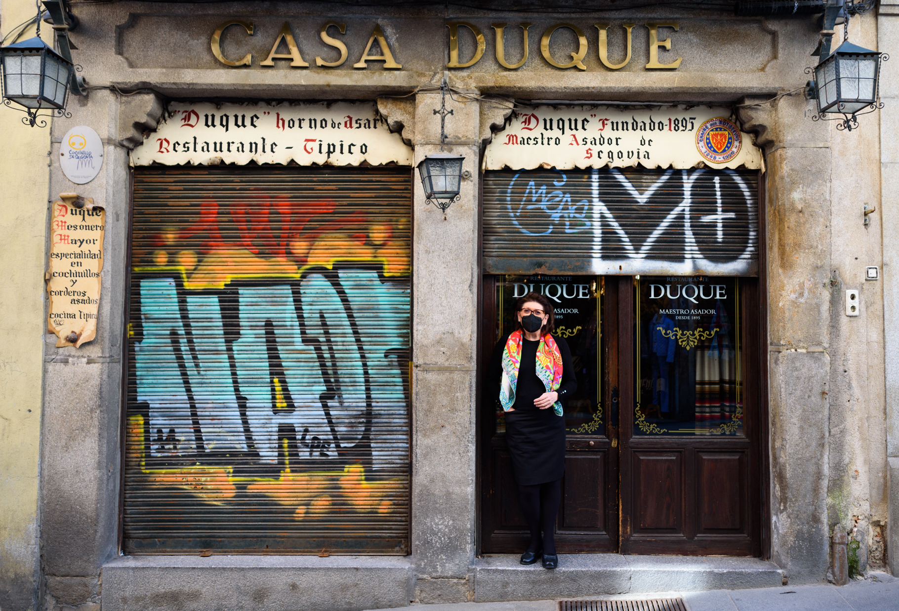 De nuevo se repite la historia. El restaurante regentado por Marisa Duque echa el cierre por completo y toda su plantilla irá de nuevo al ERTE. La hija del gran Maestro Asador Dionisio Duque, es la cuarta generación de una familia dedicada a la hostelería, con la quinta generación ya en ciernes. "Ya no sabemos qué hacer, llueve sobre mojado. No lo entendemos después de lo que ya sabemos de este virus", señala con impotencia. "El dolor enorme, ya no solo por el grave deterioro económico, sino porque esto no lo puede soportar un negocio, sobre todo porque casi todas las casas de hostelería son la vida de una familia", indica la dueña de este restaurante ubicado en la calle más concurrida de la capital castellana.