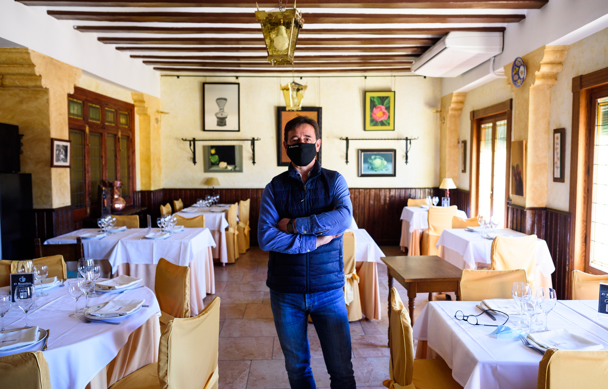 Frente al restaurante El Sitio permanece, ya cerrado, el restaurante el Figón de los Comuneros. Carlos se encuentra sólo en su interior y abre la puerta para recibirnos. Desde que empezó la pandemia cinco de sus trabajadores siguen en ERTE y con este cierre serán otros cuatro los que dejen de trabajar. "No toca ahora resignarnos y acatar lo que dicen porque nos han tachado a nosotros como si fuéramos culpables cuando, desde nuestro punto de vista, no lo somos". "Por culpa de las fiestas y reuniones ilegales están poniendo el foco en la hostelería y eso que nosotros cumplimos todas las medidas". "Pagamos siempre los mismos".