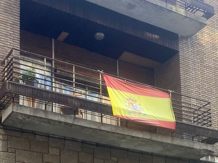 En la terraza del primer piso, podemos ver un rincón con una silla, una mesita, una planta y hasta una bandera de España. Algo que los residentes se han tomado como una burla. "No parece que sean muy patrióticos, estos delincuentes", dicen.