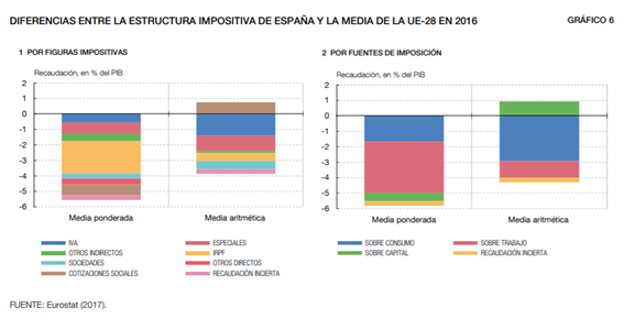 La sorpresa salta cuando el Banco de España demuestra que la mayor diferencia se encuentra en la tributación indirecta (IVA) y que la tributación sobre el trabajo es uno de los factores que menor diferencia presentan.