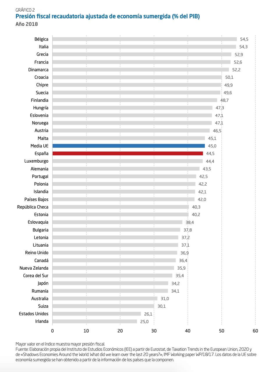El argumento estrella del gobierno se limita a estudiar la presión fiscal (es decir, la recaudación dividida entre el PIB), lo que permite sostener el camelo de que en España se pagan menos impuestos que en Europa. Sin embargo, este enfoque ha sido denunciado por el IEE como una aproximación "simplista" a la cuestión de la incidencia de los tributos sobre el bolsillo de los ciudadanos.