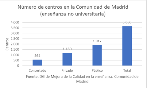 Todo ello, con un incremento de centros educativos muy importante, hasta llegar a los 3.656 centros educativos en la enseñanza general no universitaria, 2.500 de ellos financiados con fondos públicos.