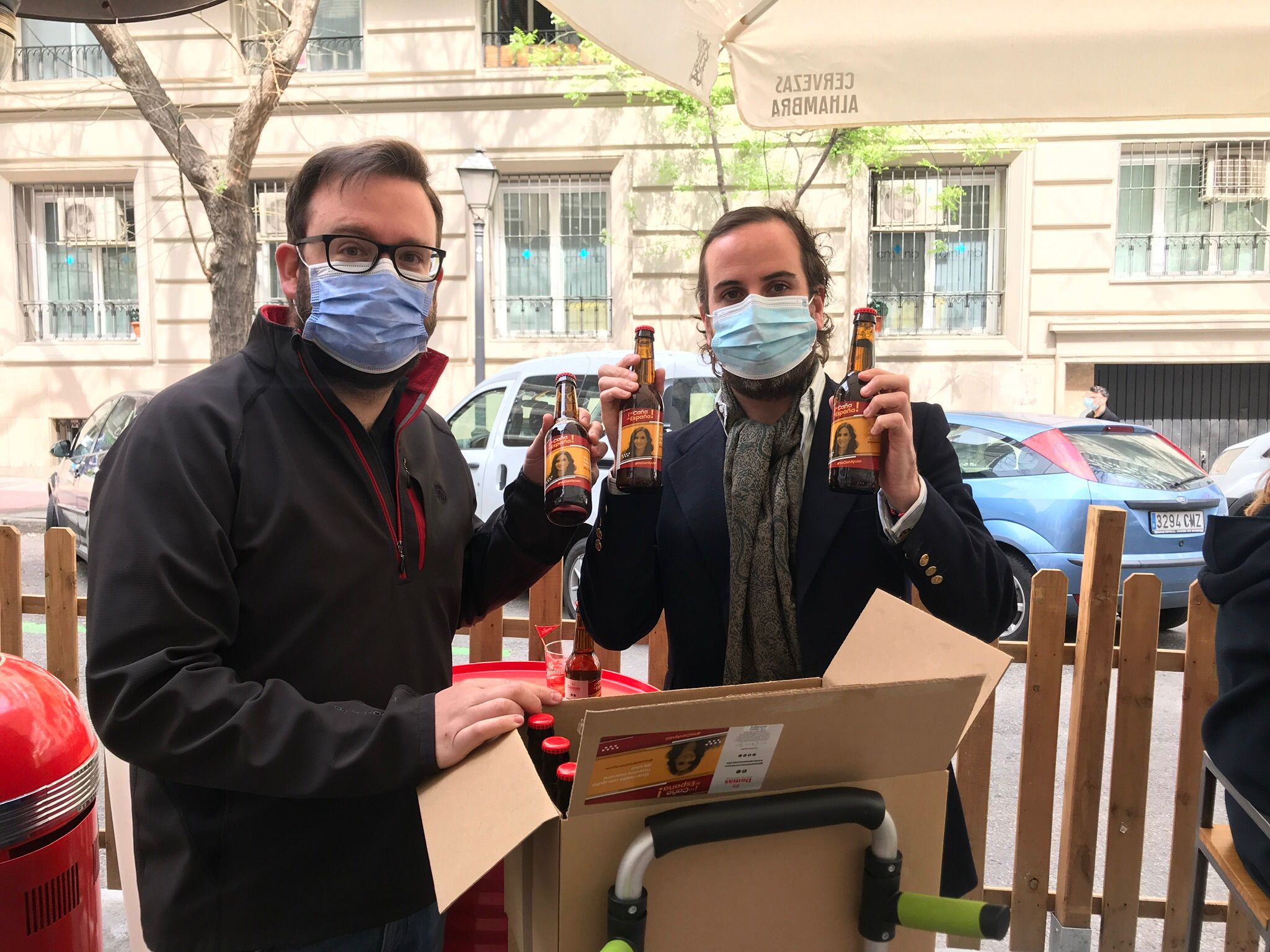 El restaurante Carbón Negro de Madrid fue el encargado de presentar la cerveza junto a Isabel Díaz Ayuso, que se mostró feliz con la idea que habían tenido los hosteleros y aplaudió que el botellín de cerveza artesanal llevara su imagen plasmada en la bandera de España.