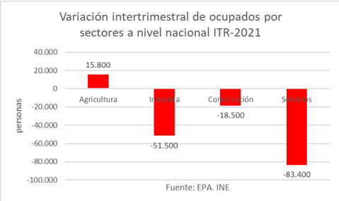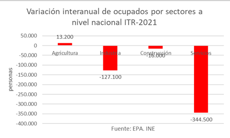 Mientras, el resto de datos nacionales son horrorosos: el empleo cae en casi todos los sectores, con especial fuerza en el de servicios: