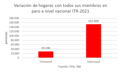 Por otra parte, los hogares con todos sus miembros en paro se incrementan en 29.200 en el trimestre y se sitúan en 1.226.200 hogares. En términos interanuales, el incremento de hogares con todos sus miembros en paro es de 152.400 hogares.