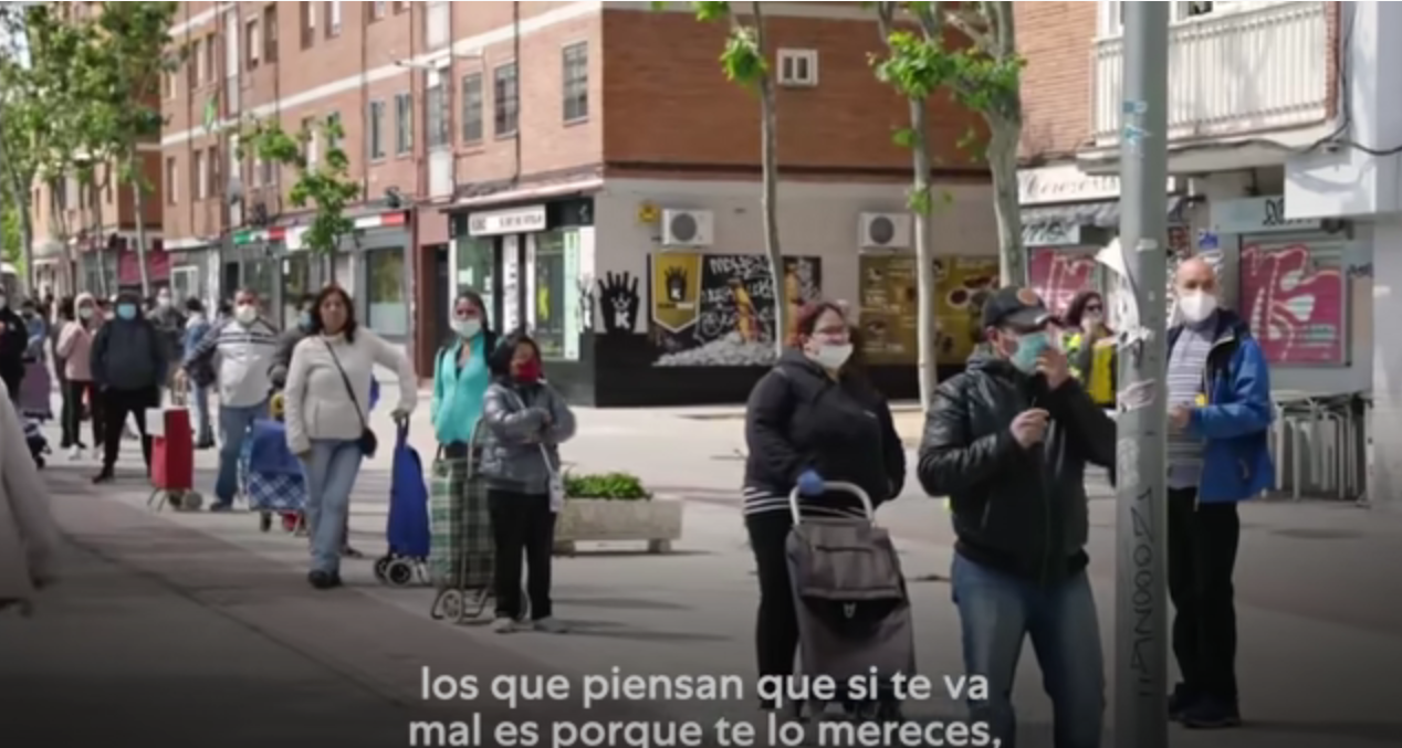 La voz en off, en la secuencia del Banco del Bebé de la Fundación Madrina, alude a "una mayoría responsable y solidaria que luchaba por salir…". La sorpresa entre los voluntarios de la fundación ha sido mayúscula, porque ninguno ha tenido conocimiento de que los representantes de la formación morada hayan acudido a preocuparse lo más mínimo por la escasez que ha sufrido el Banco de Alimentos durante la pandemia. "Agradezco a este partido que nos saque en su vídeo de campaña, pero, si verdaderamente está preocupado, le diría: ven a ayudar. Le invito a que venga a ayudarnos a las colas del hambre algún día", ha transmitido Conrado Giménez a Libre Mercado.