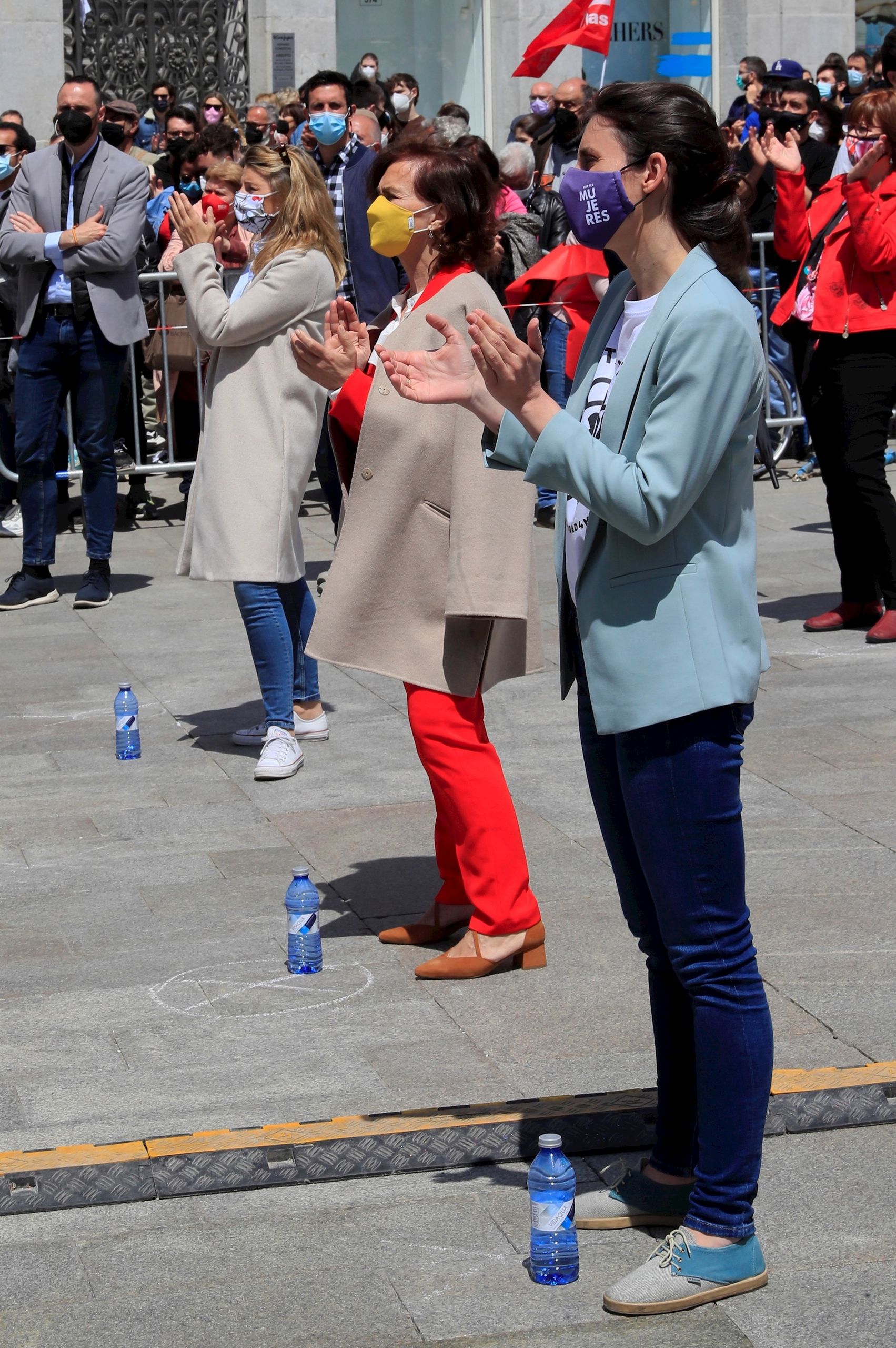 Los principales sindicatos han convertido este 1 de mayo en el Día Internacional de los Trabajadores más politizado y electoralista de los últimos años. Con la vista puesta en las elecciones que el próximo martes se celebrarán en la Comunidad de Madrid, la manifestación de este sábado ha contado con la participación de todos los candidatos de la izquierda -Ángel Gabilondo, Pablo Iglesias y Mónica García- y con la presencia de hasta siete ministros.