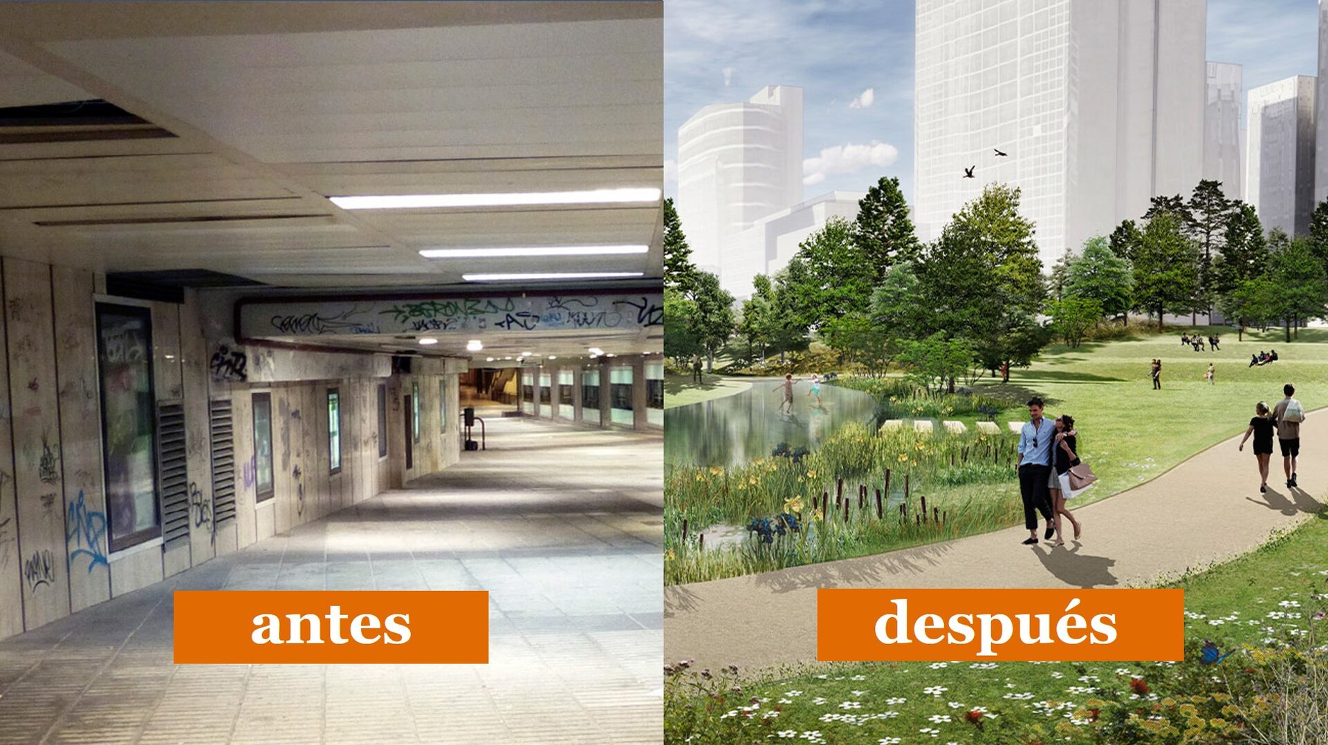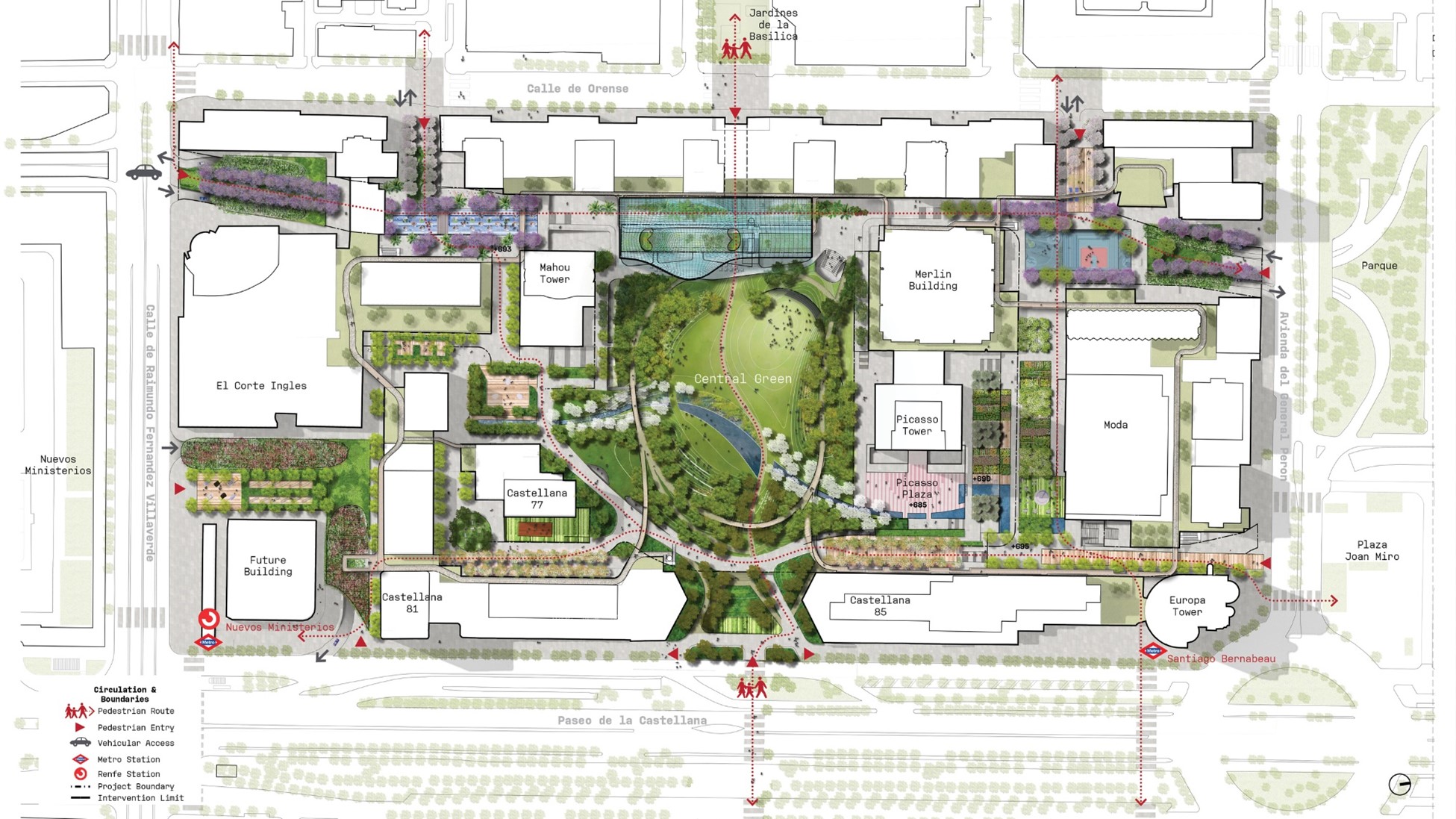 Lo que parece claro, tal y como se pudo comprobar en el acto de presentación del proyecto, es que las características del mismo serán rompedoras. Además de las necesarias adaptaciones arquitectónicas y de accesibilidad que acaben con los espacios oscuros e inseguros, destaca especialmente la futura pradera verde, que podrá albergar actividades al aire libre y grandes eventos con hasta 10.000 personas. Además, la zona contará con parques infantiles, biblioteca al aire libre, un mercado de productos frescos, un invernadero, un curioso sistema de ‘sobra permanente’, e incluso se recuperará el antiguo arroyo de la Castellana.