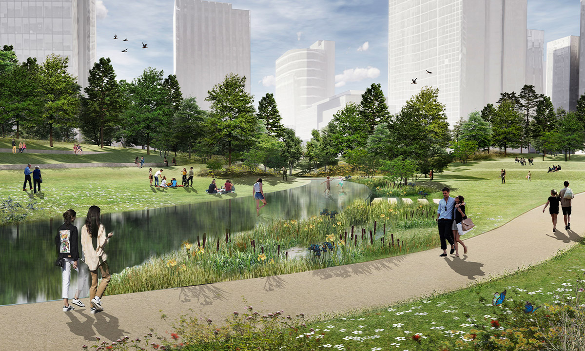 A este respecto, desde RENAZCA aseguran que se creará "un ecosistema urbano de gran biodiversidad formado por especies vegetales autóctonas, recuperando antiguos cauces fluviales que mezclan sistemas de captación y almacenaje de agua de la lluvia para riego y fuentes".
