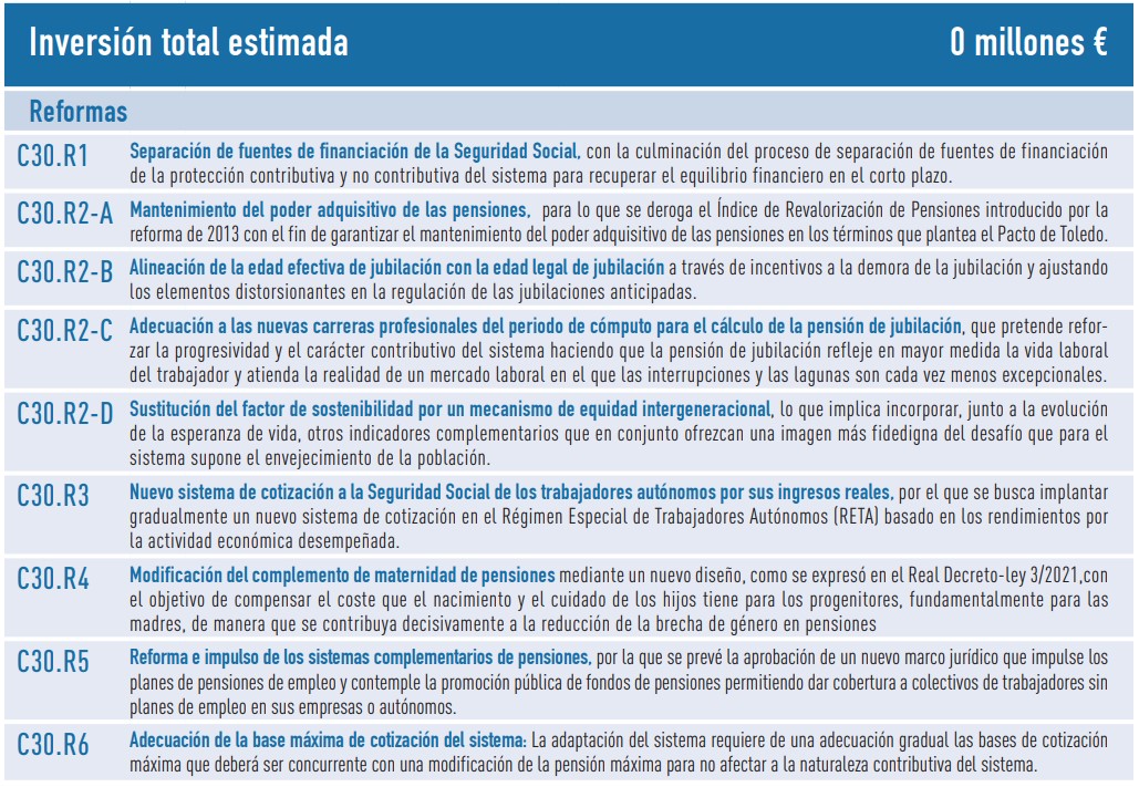 --- "R5. Reforma e impulso de los sistemas complementarios de pensiones": habrá planes de empleo en las empresas e incluso un gran fondo público para complementar aquel y para los que no tengan acceso a aquellos (autónomos, temporales...).